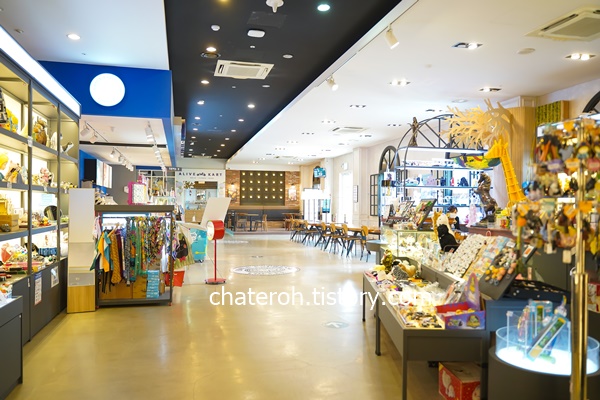 관람을 마치고 나갈 때는 기념품샵을 거쳐서 갑니다. 그리고 저기 밖으로 나가면 카트를 타는 곳이기도 하구요. 카트를 타지 않더라도 주차장으로 갈 때 자연스럽게 그 풍경을 볼 수 있도록 만들어놓아서 구경해도 좋고, 또 카트를 타고 싶다라는 생각이 들게 해 놓았더라구요.