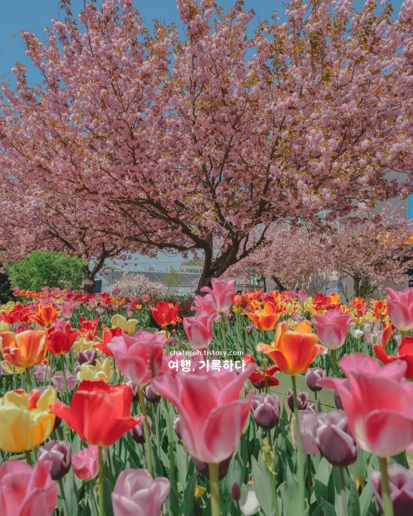 4월엔 튤립과 겹벚꽃, 영산홍이 차례로 피고, 가을이면 핑크뮬리가 몽글몽글~ 인생사진 맛집 인증! 가족, 아이, 연인 누구와 와도 좋고, 돗자리 챙겨 와서 도시락 먹으며 꽃놀이 즐기기 딱이에요. 벚꽃 잎이 바람에 흩날릴 때 그 아래 앉아있으면... 음, 여기가 바로 내 힐링의 중심이다...! 싶어져요.