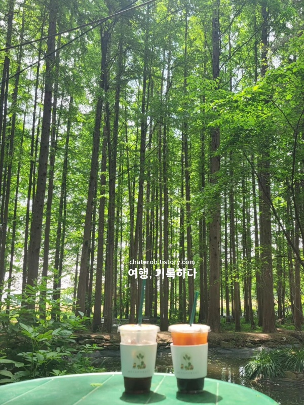 실내 공간은 최소한으로만 꾸며져 있고, 테이블은 대부분 야외에 집중돼 있다. 숲 냄새는 강하지 않지만 오래 머무를수록 은근하게 배어든다. 6월의 메타세쿼이아는 배경에 가깝고, 그 배경 안에서 시간을 써야 의미가 생기는 것 같다.