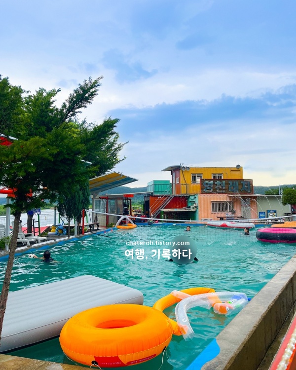 영천레저는 여름이 시작되는 6월부터 야외활동이 본격적으로 열리는 공간으로 카약, 수상자전거, 워터슬라이드 같은 수상레저를 운영하며, 두 가지 이상을 이용하면 카약 체험이 무료로 포함된다. 바비큐는 레저 이용객만 예약 가능하며, 별도 예약 없이 테이블만 사용할 순 없다. 식사공간은 수변 바로 옆에 마련돼 있고, 텐트존과 야외 데크가 구역별로 나뉘어 있다. 샤워장, 조리도구실, 대형 수영장 등은 레저 이용객에게 무료로 개방된다.