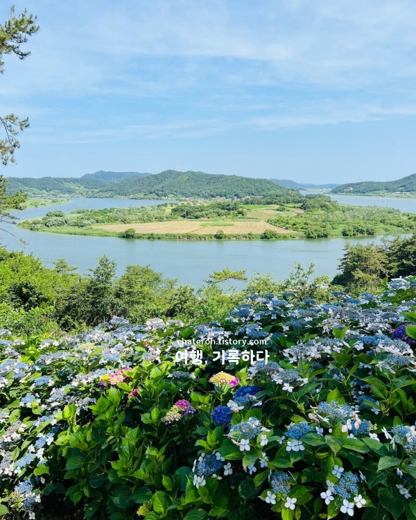 전망대에 오르면 영산강과 들판, 멀리 무등산 능선까지 열린다. 전체 산책은 1시간이면 충분하고, 여긴 수국만 보기엔 아까운 장소고, 풍경을 걷는 중에 수국이 따라붙는 쪽에 가깝다. 느러지 전망대 자체의 풍경이 너무 좋고 수국도 예뻐서 6월 전라도 여행지 추천으로 숨은 명소다.
