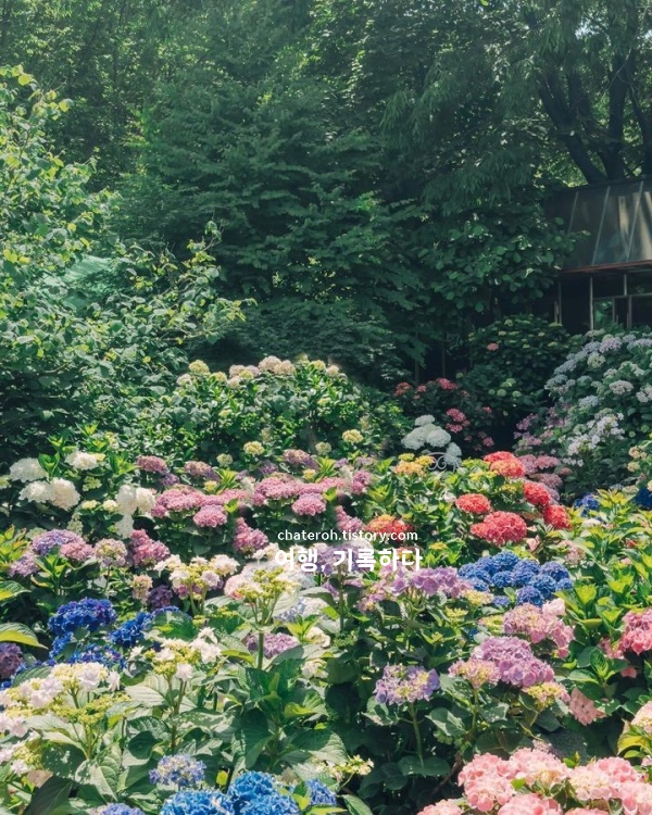 6월 중순 ~ 하순이면 수국이 가장 풍성하고, 6월 초에는 개화가 덜 되었고, 7월을 넘어가면 수국이 지기 때문에 입장료 아깝다는 생각이 들 수 있다. 6월 국내여행지 베스트 10 추천으로 방문하려면 절정시기를 잘 맞추는 게 중요하다.