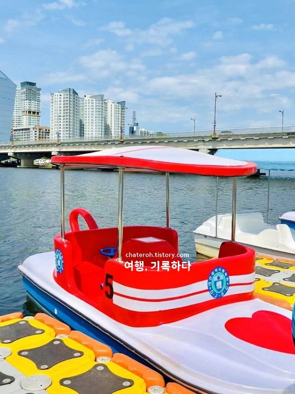 처음 조정할 때는 배가 제자리에서 돌기도 하지만, 몇 분 지나면 방향을 잡는 데 익숙해진다. 갑천 수면은 바람이 강하지 않아 조작이 어렵진 않지만, 멀미가 있는 사람은 조금 어지러울 수 있다.