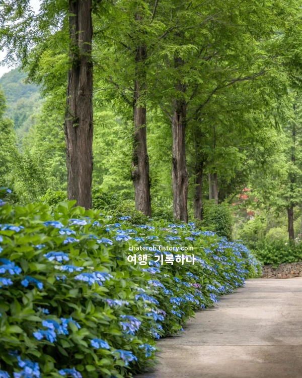실내 식물원은 유료 입장이고, 외부 정원은 입장만 하면 누구나 둘러볼 수 있는 구조다. 수국 외에도 계절 꽃들이 구간마다 나뉘어 있어서 전체 동선은 1시간 정도면 충분하다. 카페, 체험장, 온실, 작은 동물구역까지 연결돼 있어 잠깐만 둘러보기엔 구성 자체가 아깝다. 식물원 근처엔 팔당호반 드라이브 코스나 남한산성 도립공원, 또는 분위기 좋은 퇴촌 카페 거리도 함께 들르면 6월 국내여행지 베스트 10으로 더욱 좋다.