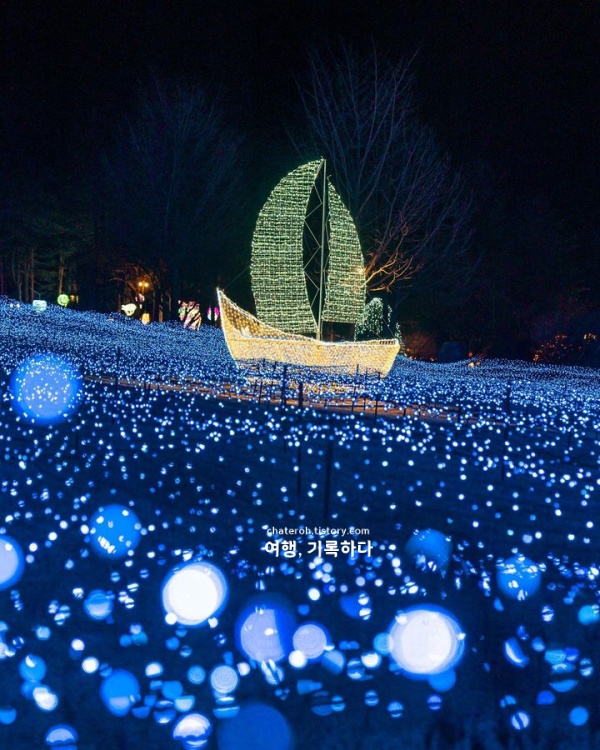 가평도 서울근교 드라이브 갈만한곳이다. 겨울밤, 산자락 아래 조용히 숨어 있던 정원이 수백만 개의 빛으로 깨어났다. 산책로 전체가 마치 별이 쏟아진 듯한 빛의 풍경으로 뒤바뀌었다. 해가 지면 일몰 직후부터 조명이 하나씩 켜지고, 토요일엔 밤 11시까지 연장 운영되니 서울에서 출발해 당일치기로도 충분히 ‘빛축제 + 야경 산책’ 코스를 완성할 수 있다. 낮의 정원과 밤의 빛축제를 한 번에 보는 것도 가능해서, 겨울 서울 근교 여행지로 괜찮아 보인다.