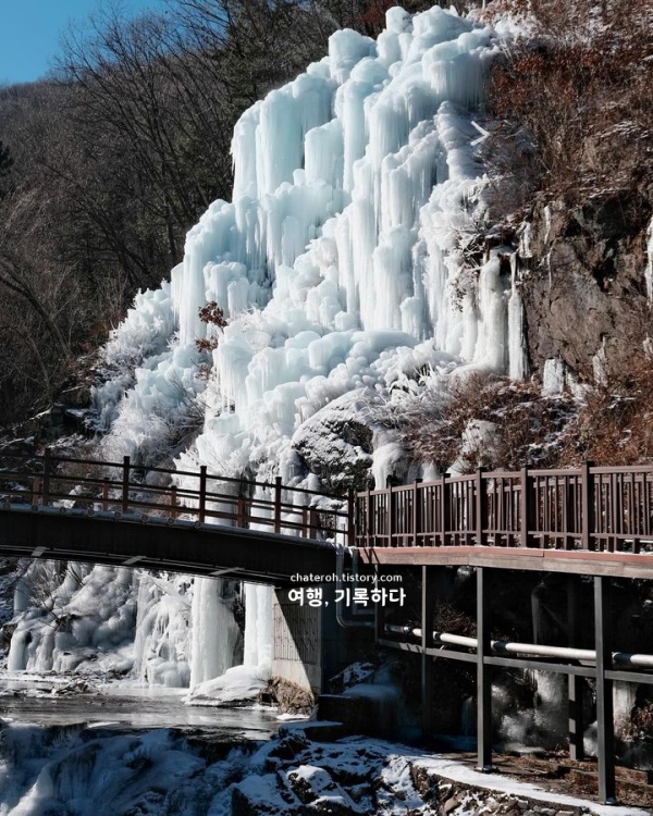 겨울이라 더 매력적인 어비계곡. 겨울 서울근교 당일여행 갈만한곳으로 2025년 겨울부터 ‘겨울나라’라는 이름으로 이곳엔 전통 썰매, 회전 눈썰매, 팽이치기, 이글루 포토존 같은 겨울 체험과 축제가 더해졌다. 계곡 바위를 타고 내린 물이 얼어붙어 만들어진 빙벽과, 얼음 위 반사에 반짝이는 겨울 햇살은 도시에서 절대 느낄 수 없는 ‘찬 공기 + 자연의 무게감’을 준다.