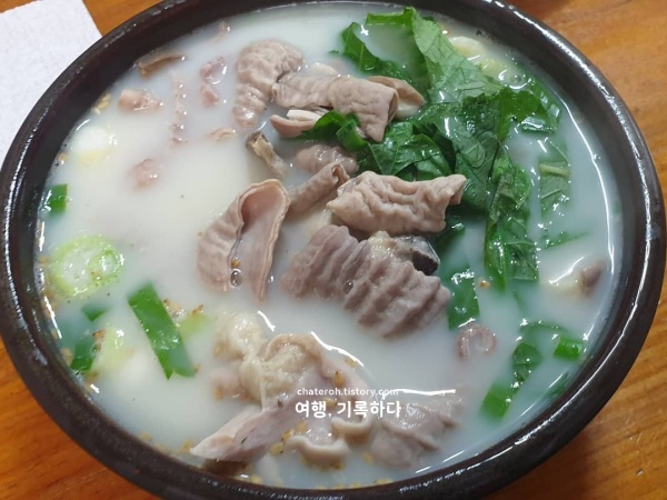 고현종합시장 안쪽 좁은 골목에 있는데, 처음 찾아갈 때는 주변 상인들에게 물어가며 겨우 찾았다. 그냥 시장 국밥집이겠거니 생각하고 들어갔다가, 한 입 먹고 나서 왜 사람들이 줄을 서는지 바로 이해했다. 뽀얀 사골 국물에 깻잎을 올려 잡냄새를 잡은 내장국밥은 먹어본 국밥 중에서 손가락 안에 꼽을 정도였다. 거제 토박이들이 오래전부터 단골로 드나드는 곳으로, 방송에 나온 적도 없는데 입소문만으로 전국에 알려진 현지인 맛집이다.