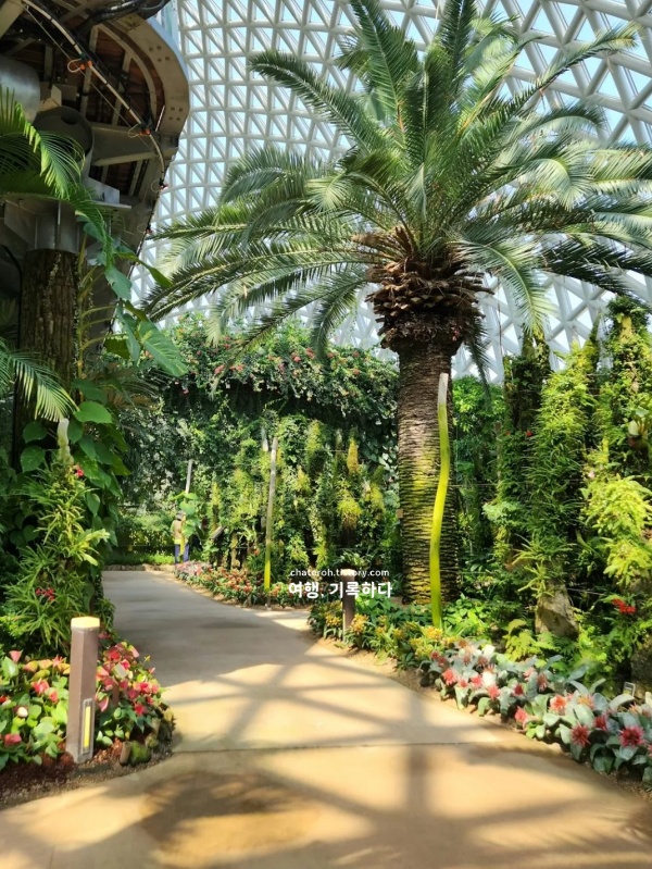 7,472장의 유리 패널로 만든 높이 30m의 돔 안으로 들어서는 순간 열대우림이 펼쳐진다. 습하고 따뜻한 공기와 함께 초록빛이 사방을 감싸는데, '이게 거제에 있는 거야?' 싶을 만큼 이색적이다. 국내 최대 규모의 돔형 식물원답게 300여 종 1만 주의 열대식물 사이로 인공 폭포가 흐르고, 빛의 동굴과 새둥지 포토존 같은 공간에서는 SNS용 사진을 충분히 건질 수 있다.