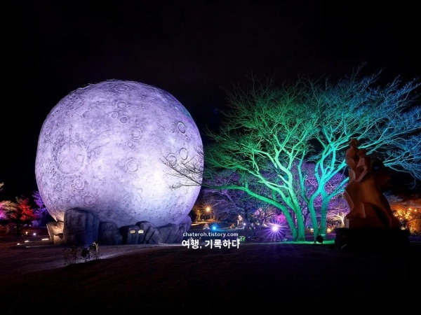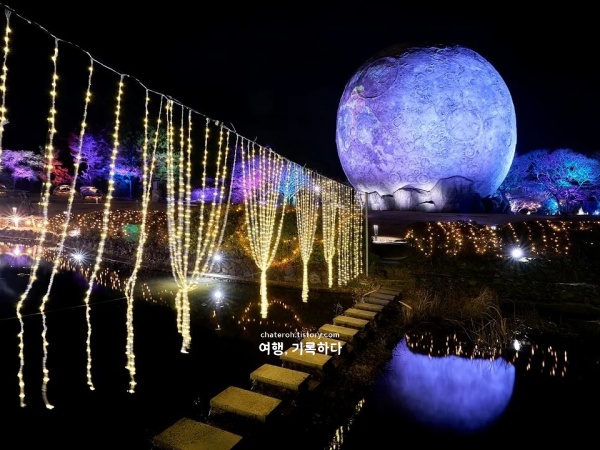 코스를 천천히 걸으며 여유를 즐기다 보면 1시간 30분 정도는 금방 지나갑니다. 넓은 들판과 숲길을 따라 걸으며 곳곳에 마련된 공간에서 피크닉을 즐길 수도 있어, 자유롭게 머무르며 감상하는 즐거움이 있었습니다. 조명이 켜지면서 더욱 몽환적인 분위기를 자아내는 이곳에서, 제주 밤의 색다른 매력을 만나보는 건 어떨까요? 달이 내려앉은 듯한 이곳에서 소원을 빌며 특별한 밤을 보내는 것도 멋진 추억이 될 것 같습니다.
